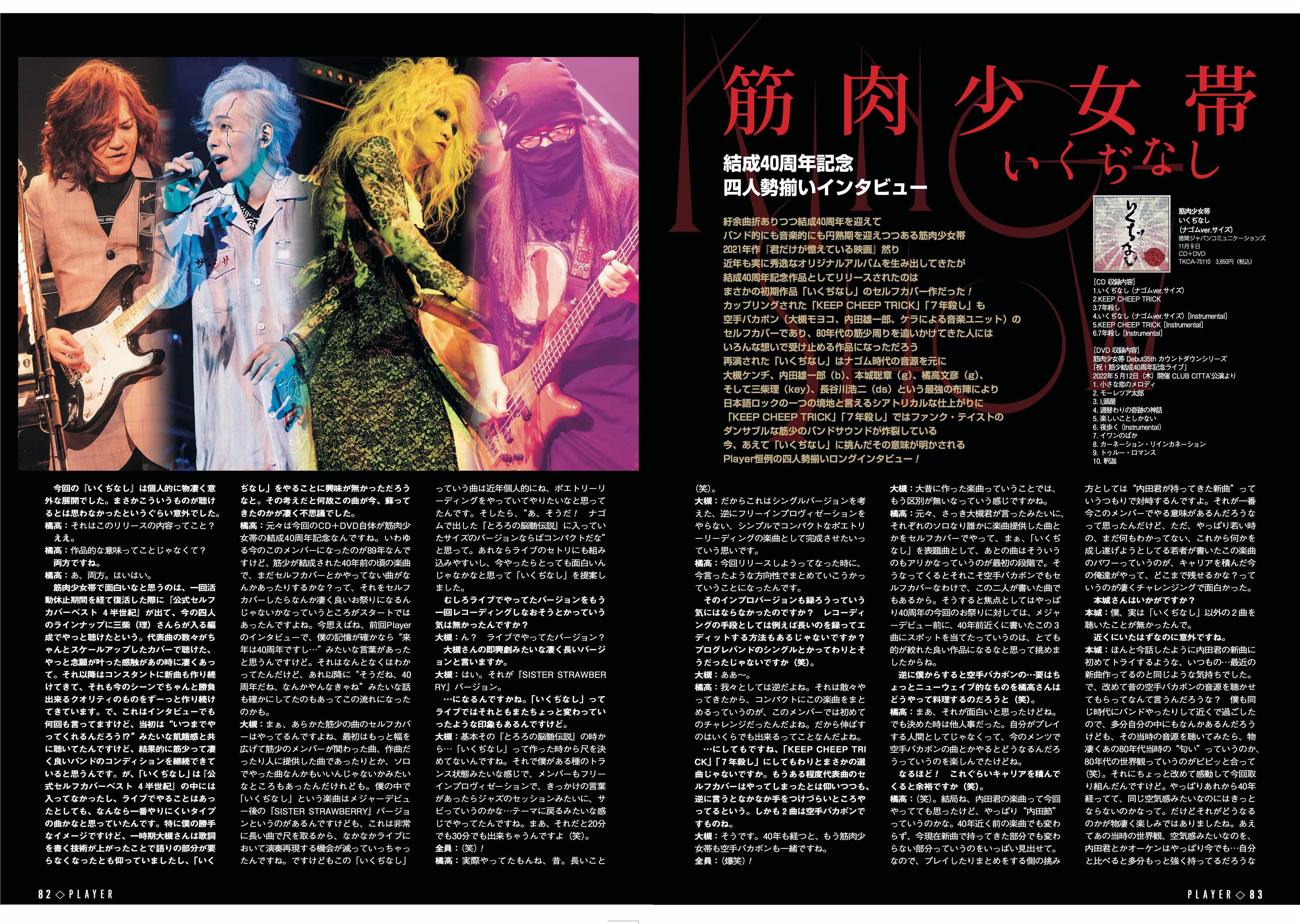 インタビュー陣では高見沢俊彦(THE ALFEE)、筋肉少女帯のメンバー四人勢揃い! 加藤ひさし(THE COLLECTORS)、GLIM SPANKY、EYRIE、BLUEVALLEY、スペシャル対談では菅波栄純(THE BACK HORN)×細川大介(LACCO TOWER)、HIROSHI(FIVE NEW OLD)×井上竜馬(SHE’S)が登場。いずれもPlayerならではの圧倒的ボリュームによるインタビューをお楽しみいただきます。さらに女性ボーカル限定で行なわれたMITSUBACHI ROCK CIRCUIT 2022の模様も取材。立夏-Ricca-BAND、橋爪ももらのインタビューも掲載。