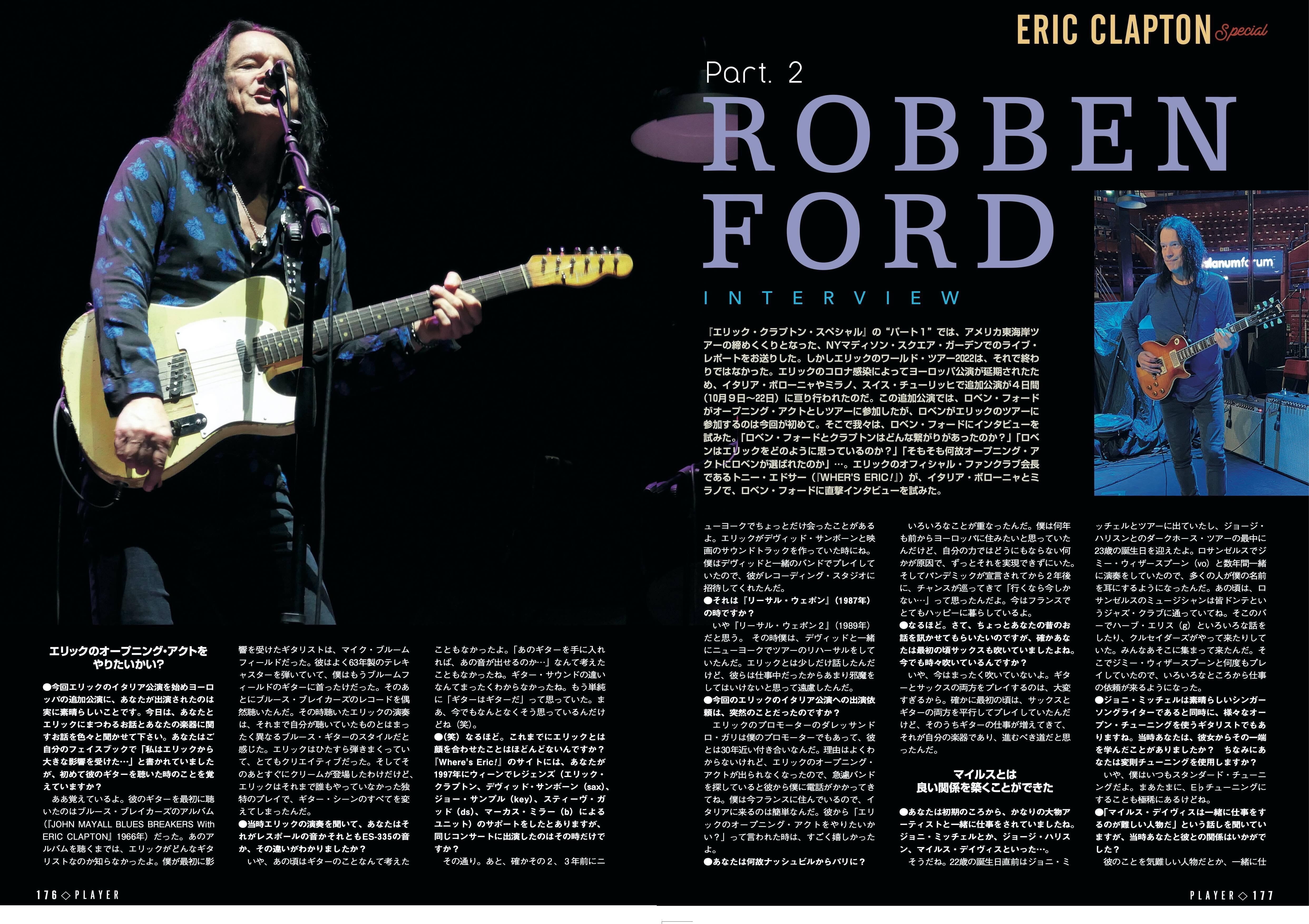 特集記事ではSSMP永田ショーザブローによるゼマイティス・コレクション、ギブソンのトラスロッドカバーに着目したそのヒストリー、さらにERIC CLAPTONの最新ツアーレポートではゲスト参加したROBBEN FORDの最新インタビューも掲載。
