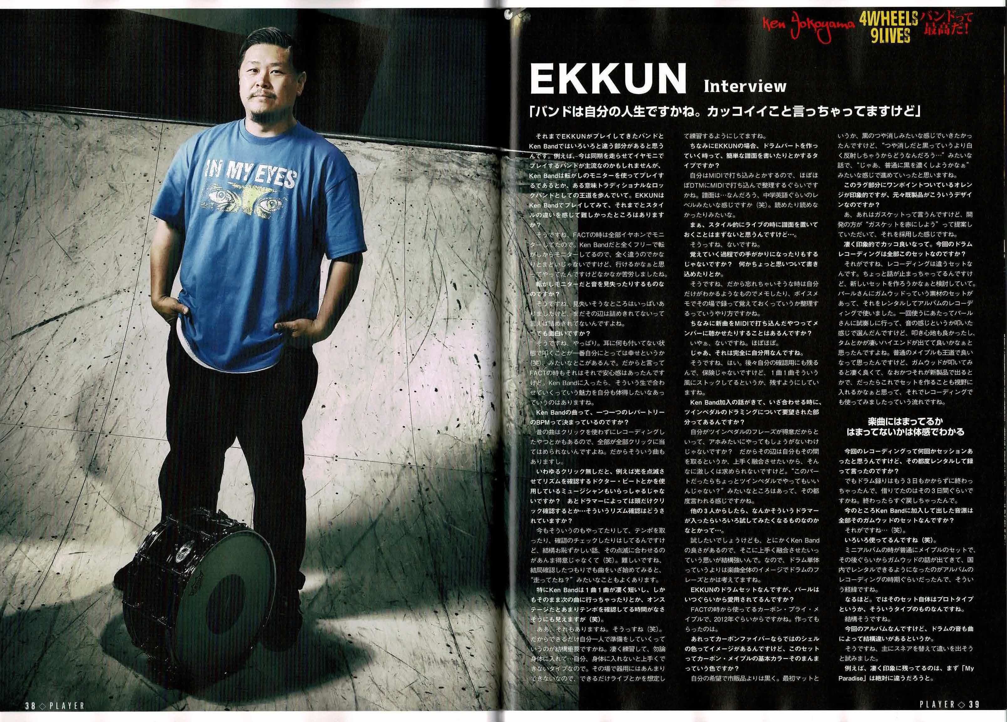 『4Wheels 9Lives』リリースで恵まれた、今回のKen Yokoyamaの取材のチャンス。取材にあたり僕がお願いしたことは、Ken Band4人の取材によるカバーストーリーであること、そして楽器を一式、しかも多めに持ってきていただきたいということでした。さらに紆余曲折あって普段の撮影スタジオが使えないこととなり、せっかくなら普段できないようなロケ取材をしようと考えたのです。そうして探しだした場所が、たまたまなのですがローラースケートリンク場でした。Ken Bandにローラースケートリンク場、これは合う!と。様々なリンクがある中で、いつものライブのように機材をセットアップしていただいての撮影、そしてKen Band4人による座談会インタビュー、さらにソロインタビュー…インタビューだけで70,000字超えのボリュームで、最新楽器レポートも加味。フォトカード含めて50ページの巻頭特集になりました。前作『Bored? Yeah, Me Too』、そして『4Wheels 9Lives』はEKKUN加入により、また新しい局面のKen Bandが感じられるロックアルバム。ギターソロを弾きまくってくれるだけでも充分嬉しいのだけれど、キャッチーなコーラスも抜群で、コロナ禍の現実のモヤモヤに直視するところもありつつ、なんかそれを吹き飛ばすような痛快さもあります。ヘヴィなテーマ性を歌っているのだけれども、これを聴いた人はポジティヴなヴァイヴを受け取りますよね。僕もKen Band表紙でロックファンのテンションを上げられるようなことをやりたかった。マニアックな切り口のインタビューですが、一言で言えば“バンドって最高だ!”なのです。(Player 編集長 北村和孝)